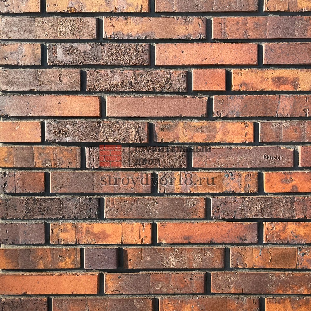 Кирпич клинкерный "Скрябин Керамикс" Сортировка 35 включает в себя богатую палитру цветов: жёлто-оранжевые, коричневые, коричневые с подпалинами и красные оттенки. Присутствие серого песка на поверхности придаёт материалу уникальную текстуру, делая его особенно привлекательным для создания ярких и выразительных фасадов. Такой кирпич придаёт зданиям индивидуальность и характер, подходя для проектов, требующих насыщенного и тёплого цветового оформления.
