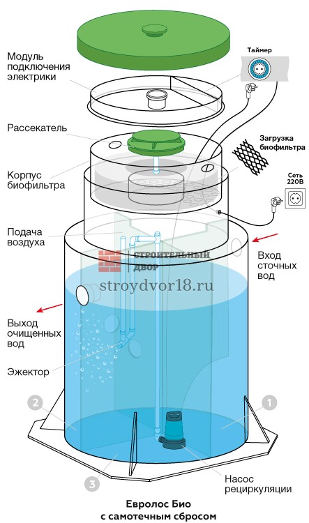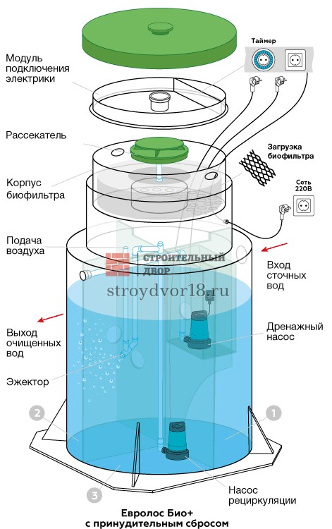 Евролос БИО 5 предназначена для домов с постоянным проживанием до пяти человек и обладает увеличенным рабочим объёмом. Доработанная конструкция корпуса обеспечивает устойчивость и надёжность при высоких нагрузках. Эжекторная система очистки сохраняет энергонезависимость и обеспечивает высокую эффективность переработки стоков. Станция подходит для участков с разными грунтовыми условиями и не требует сложного обслуживания. Она обеспечивает стабильную работу при больших ежедневных водоразборных циклах.